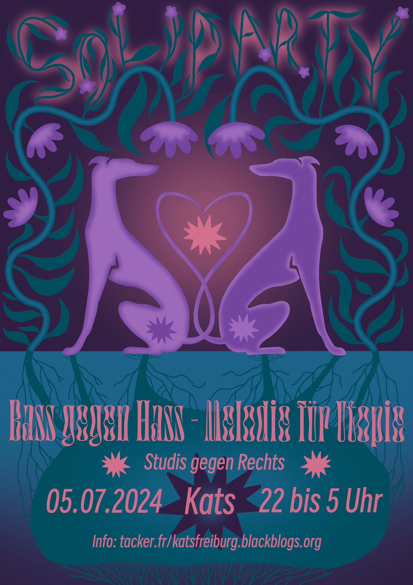 Lasst uns gemeinsam gegen Hass und rechtes Gedankengut das Tanzbein schwingen! Am 05.07.24 laden wir zusammen mit den Studis gegen Rechts Freiburg auf zwei Floors zum Feiern ein. Zu harten Bässen und verspielten Melodien setzen wir ein Zeichen gegen Diskriminierung und für Toleranz, Vielfalt und Menschlichkeit. Der Großteil des Soli-Eintritts und der Einnahmen unserer Party gehen an die aktivistische Arbeit der Studis gegen Rechts (https://studisgegenrechts-fr.de/). Hinweise: Auf unseren Floors wird es Strobo und Nebel geben. Die Location ist leider nicht barrierefrei.