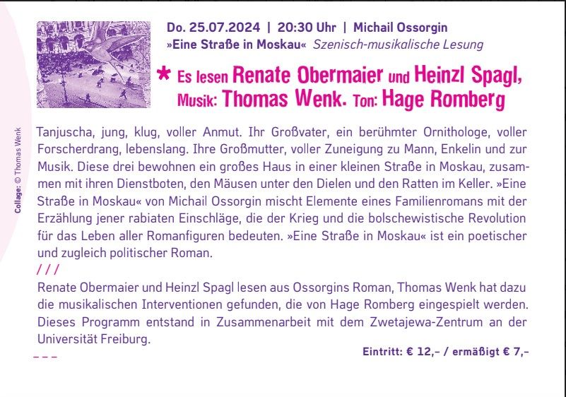 Dieses Programm entstand in Zusammenarbeit mit dem Zwetajewa-Zentrum an der Universität Freiburg.