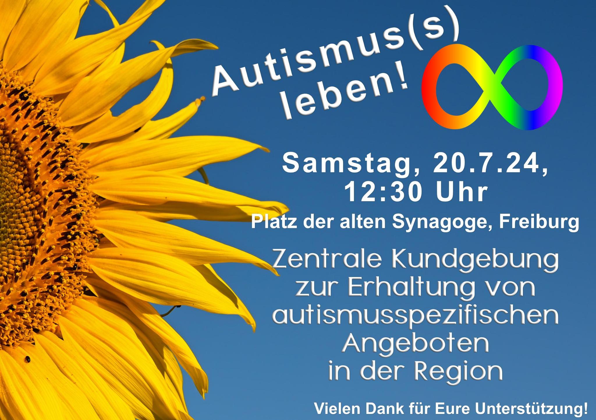 Aufgrund der drohenden Schließung des Zentrums für Autismus-Kompetenz Südbaden (ZAKS) und der ohnehin schlechten Versorgungslage in Bezug auf autismusspezifische Angebote in Südbaden findet diese Kundgebung statt. Neben Redebeiträgen wird es außerdem Infostände zum Thema Autismus geben.