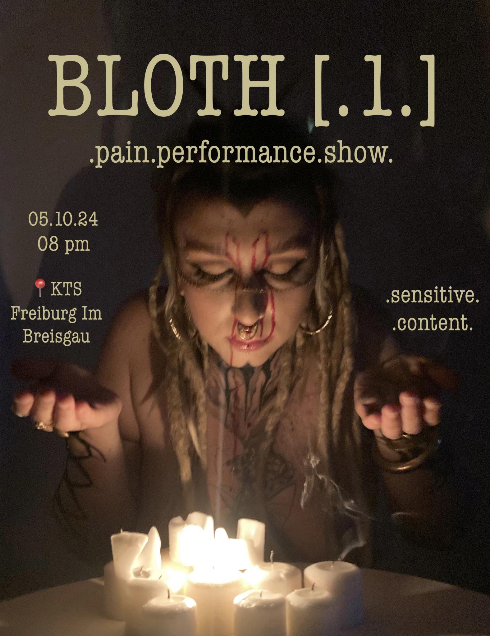 “From pain we all rise. Bloth project is projected since first second breathing to human existence. Bloth project is about life as a ritual, about our form of rising from the roots and healing. Bloth [.1.] show wakes up the secret of your roots and bright up your pain, the ritualic show which brings pain to expression and liberation. What goes in, goes out. Find out your pain and bring it out.”