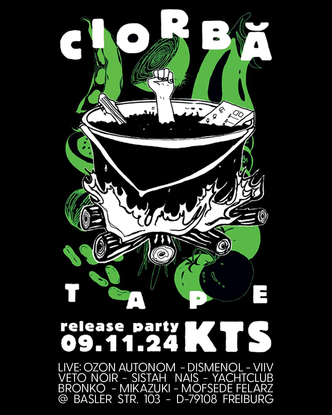 "CIORBĂ" spricht sich " t s c h o r b a " aus, ist rumänisch (findet auch gebrauch in anderen Teilen der Balkan Region/ Osteuropa) und steht für "saure Suppe". Wir haben verschiedene Geräusch- und Klangzutaten aus Nah und Fern zu einer sauren Suppe zusammengeschmissen und werden den Suppentopf KTS am Abend des 09.11.24 zum Kochen bringen.