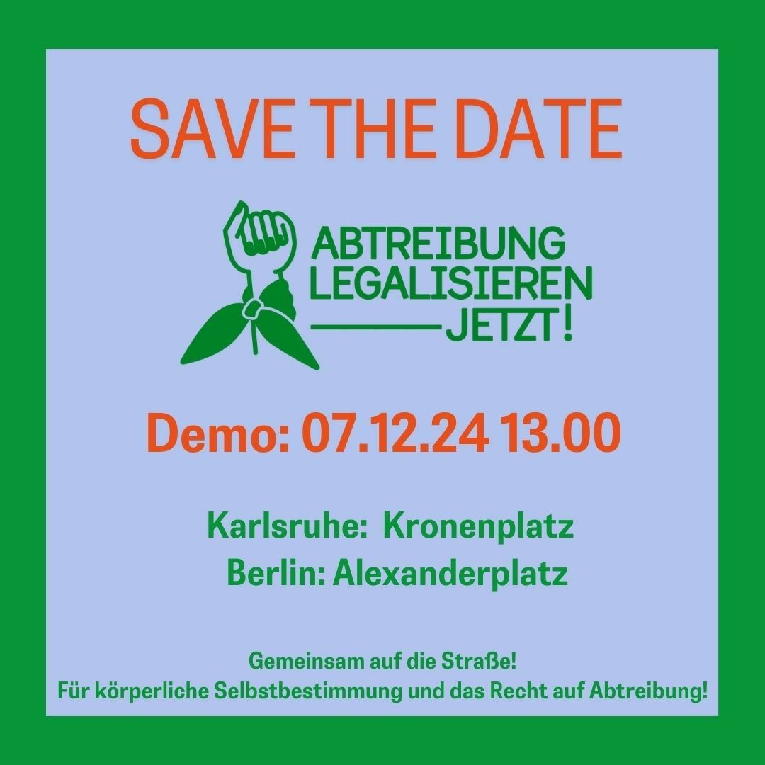 On December 7th, we will join the demo in Karlsruhe to demand the legalization and new protections of abortion care in Germany.