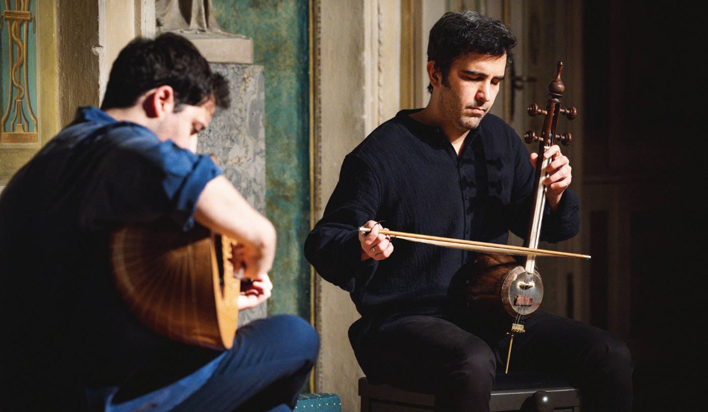 Musikalisch gestaltet wird die zweite Hälfte des Abends vom Kamancheh-Virtuosen Misagh Joolaee und dem Oud-Spieler Bakr Khleifi. Beide sind Koryphäen auf ihrem Instrument. Der aus Palästina stammende Khleifi und der Iraner Joolaee erkunden im Dialog ihrer Instrumente Verbindungen und Unterschiede zwischen arabischer und persischer Musik. Gemeinsam präsentieren sie Improvisationen und eigene Kompositionen, die sowohl von den traditionellen arabischen Maqam- bzw. iranischen Dastgah-Systemen als auch von westlicher klassischer Musik inspiriert sind.