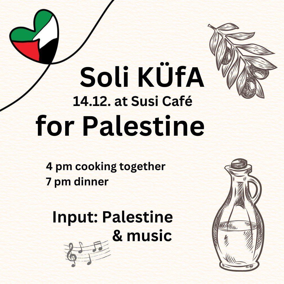 Starting at 16, we’ll be chopping and cooking – everything tastes better together! ? At 19 PM, it’s time for a delicious solidarity dinner for Palestine!