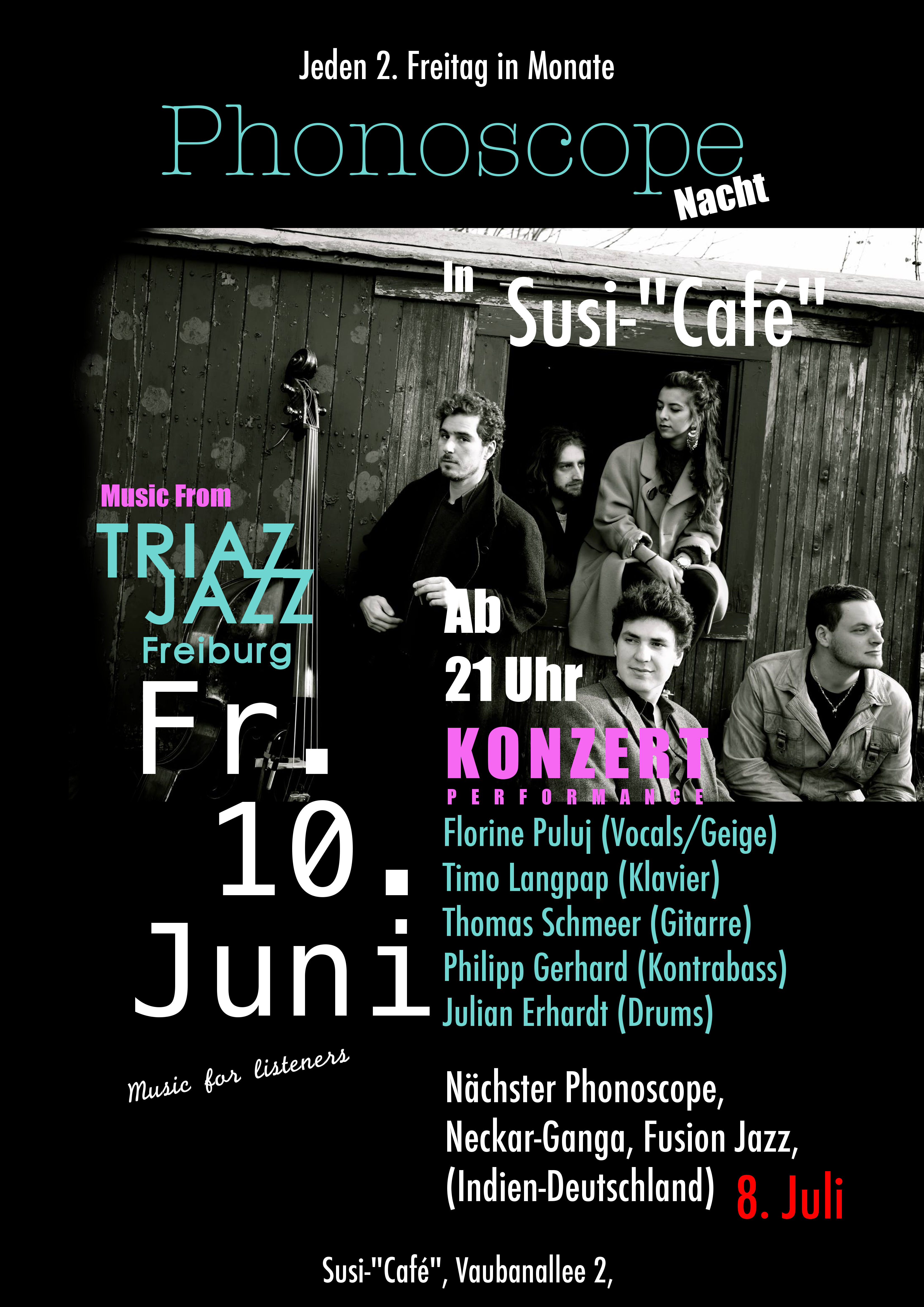 Atmosphäre, Spannung, hymnische Melodien und viel Gefühl. Das alles steckt in den Liedern der Band TRIAZ, die Jazzsounds, Latin-Einflüsse und klassische Elemente vereint. Die fünf Freiburger Musiker erzeugen überraschende und abwechslungsreiche Facetten und lassen ihren eigenen Sound und ein reiches, harmonisches Klangerlebnis zwischen Spannung, Sanftheit und kraftvollem Ausdruck entstehen.