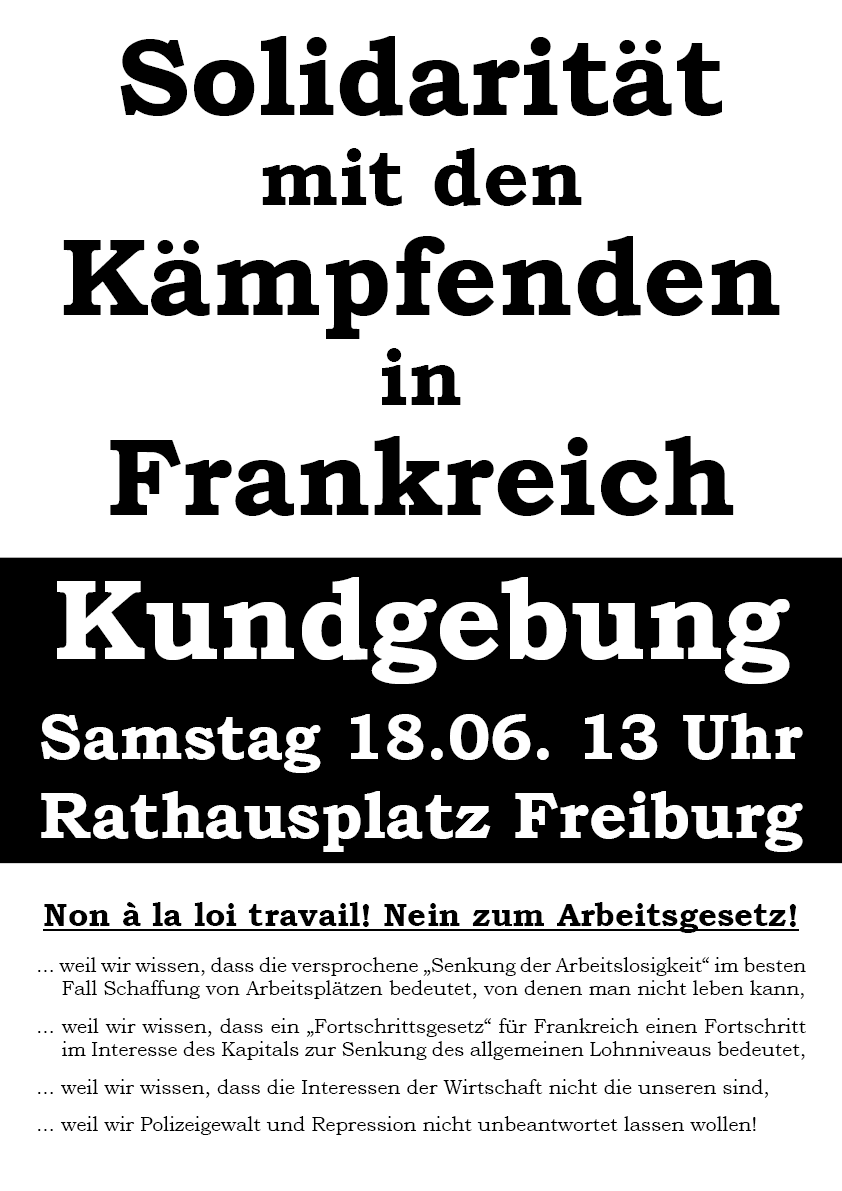 weil wir wissen, dass ein „Fortschrittsgesetz“ für Frankreich einen Fortschritt im Interesse des Kapitals zur Senkung des allgemeinen Lohnniveaus bedeutet,