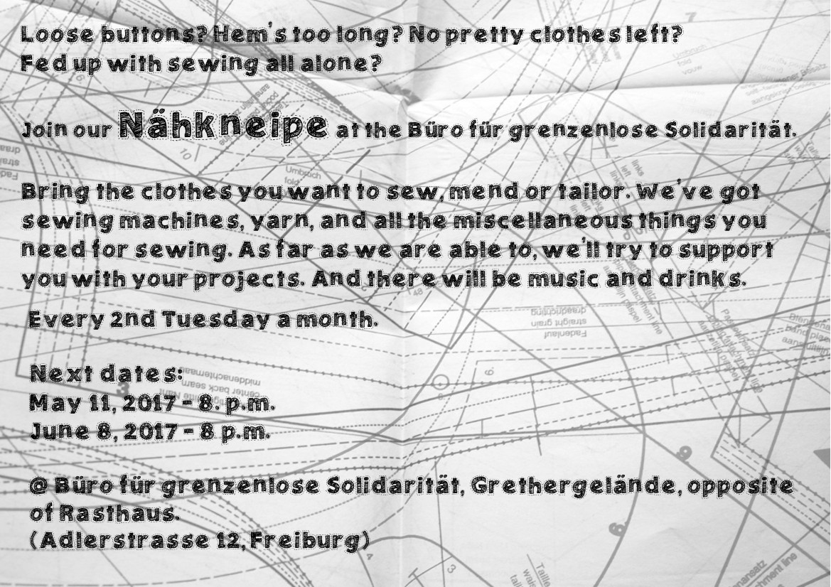 Dann komm´zur Nähkneipe im Büro für grenzenlose Solidarität.