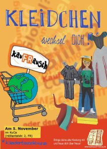 Wir veranstalten einen Kleidertausch-Nachmittag im KuCa an der PH Freiburg. Das ist die Gelegenheit, den Kleiderschrank mal wieder ein bisschen zu entrümpeln, oder wieder aufzufüllen, je nach dem.