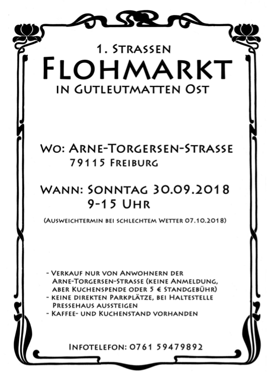 Sonntag, 30.09.18 um 09:00 Uhr - 15:00 Arne-Torgersen-Straße Arne-Torgersen-Straße 79115 Freiburg im Breisgau Deutschland Show map Type of Event Kultur Essen, VoKü, Küfa