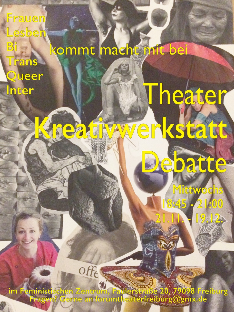 Forum Theaters Freiburg: wir sind eine Gruppe FLTI* Personen, die sich ein Mal die Woche im FZ treffen um sich durch Theater und andere kreative Wege zu Themen, die uns beschäftigen, auszutauschen.