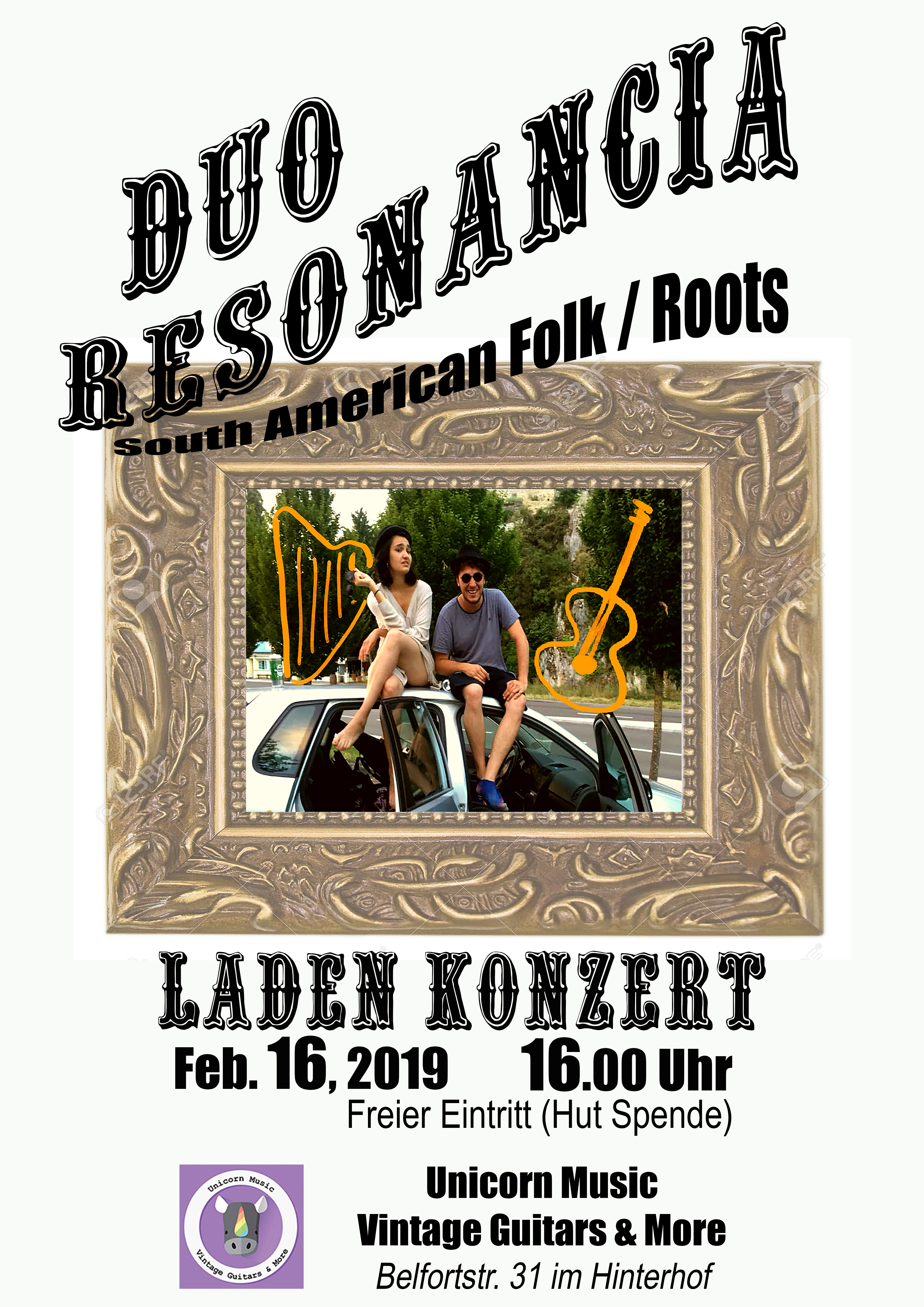 Das Duo Resonancia gründete sich im Frühjahr 2018 und widmet sich der lateinamerikanischen Folklore. Neben Auftritten in der kolumbianischen Botschaft in Berlin und in Konzertreihen in der Mosaik Jazz Bar Frankfurt und im Café au Lait Freiburg werden sie im März nach Kolumbien reisen, um dort Konzerte zu geben und sich tiefergehend mit der dortigen Musik zu beschäftigen …