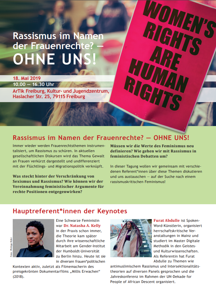 Immer wieder werden Frauenrechtsthemen instrumentalisiert um Rassismus zu schüren. In aktuellen gesellschaftlichen Diskursen wird das Thema Gewalt an Frauen verkürzt dargestellt und undifferenziert mit der Flüchtlings- und Migrationspolitik verknüpft. Was steckt hinter der Verschränkung von Sexismus und Rassismus? Wie können wir der Vereinnahmung feministischer Argumente für rechte Positionen entgegen wirken? Müssen wir die Werte des Feminismus neu definieren? Wie gehen wir mit Rassismus in feministischen Debatten um?