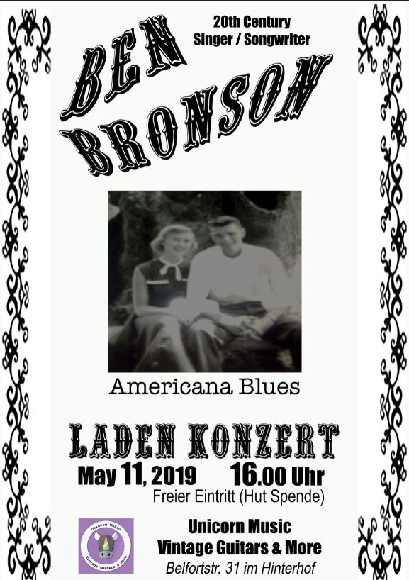 The next In-Store Concert at Unicorn Music will feature Ben Bronson. The 20th century singer/songwriter from Oakland will be serving up several of his own compositions along with side dishes of Americana Blues. Come along for some sunshine and daydreaming !