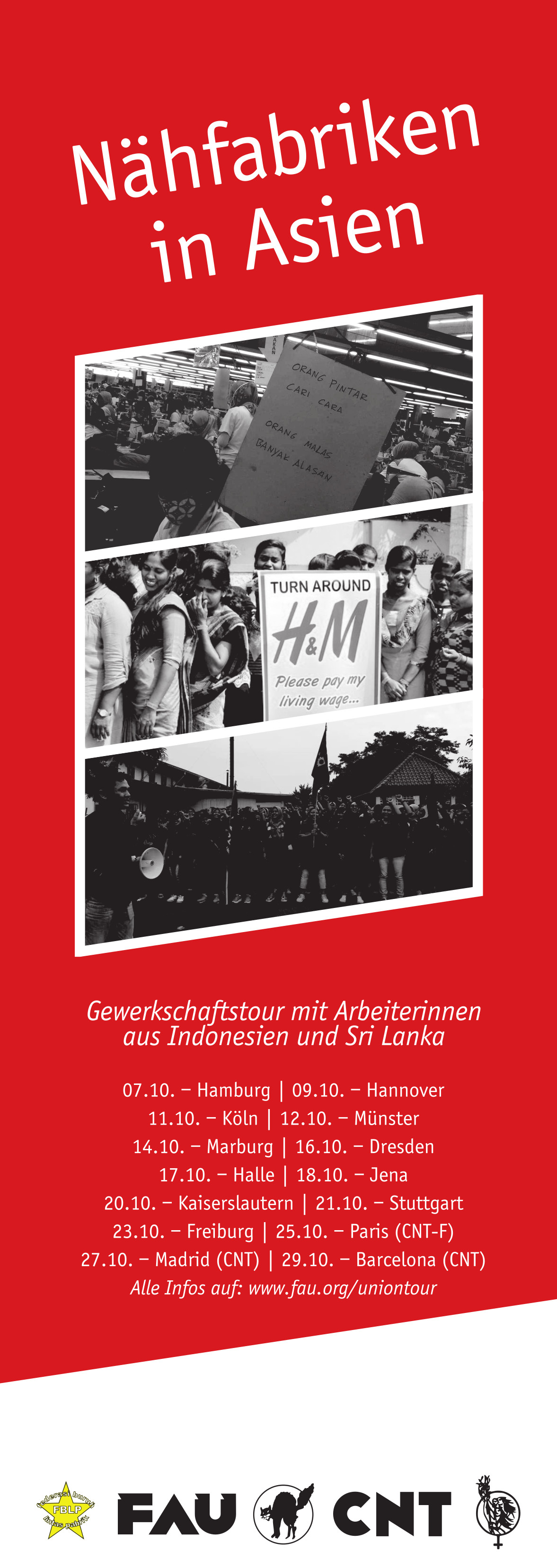 Für jede Veranstaltung ist geplant anschließend in einen Austausch zu treten und darüber zu sprechen, was vor Ort getan werden kann, um die Kämpfe der Näherinnen zu unterstützen.