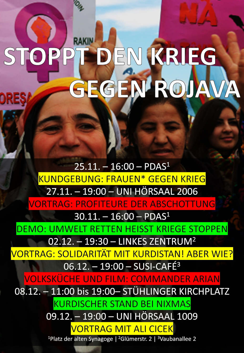 Am 9. Oktober begann die Türkei unter dem Schirm der NATO und Russlands ihren Angriffskrieg auf die verbliebenen Kantone Rojavas. Erneut sind Flucht, Vertreibung, Verschleppungen und andere Menschenrechtsverletzungen, ein Wiederaufleben des IS und die ökonomische Beschlagnahme der Produktionsmittel der lokalen Bevölkerung die Folgen.