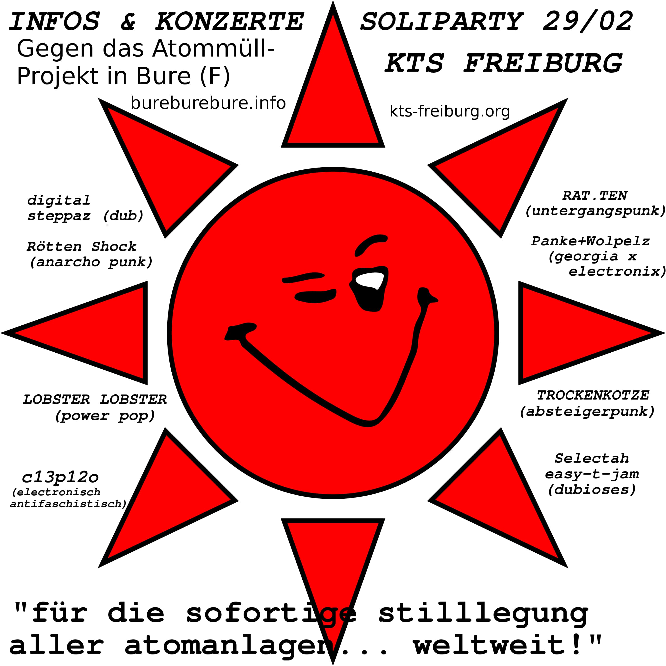 Doch bevor ihr euch den ganzen Party-Stuff in die Rübe haut, werden wir wir euch einen Stand der Dinge der Bewegung um den Solizweck unterbreiten, dafür ist um 20:30 eine Infoveranstaltung geplant. In den letzten Jahren hat der Widerstand um das geplante Atommüllendlager CIGEO in Lothringen an Fahrt gewonnen – und mit ihm die Repression. Viele Initiativen arbeiten weiterhin daran die Aktionsspielräume zurück zu gewinnen, indem Demonstrationen und thematische Aktionstage organisiert werden. Auch gibt es verschiedene Ebenen der juristischen Auseinandersetzung, Haus- und Hofprojekte werden aufgebaut – und all das kostet viel Knete**. Die Infoveranstaltung von in und um Bure involvierten GenossInnen soll einen Überblick zum aktuellen Stand im Kampf gegen die geplante Uranmülldals und mehr.eponie geben und zu den kommenden Aktionstagen Anfang März und Ende April mobilisieren. Kommt zum Ball der ÜbeltäterInnen und unterstützt die radikalen Umweltbewegungen!