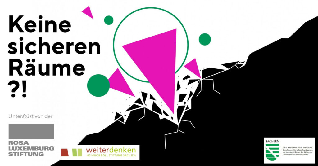 Die Reihe »Keine sicheren Räume?!« wird organisiert von: e*space Dresden, der Redaktion BEBI sowie der feministischen Bibliothek MONAliesA und gefördert von der Rosa-Luxemburg-Stiftung, dem Autonomen Feministischen Kollektiv Hannover, In Zusammenarbeit mit Weiterdenken Heinrich-Böll-Stiftung Sachsen. tba