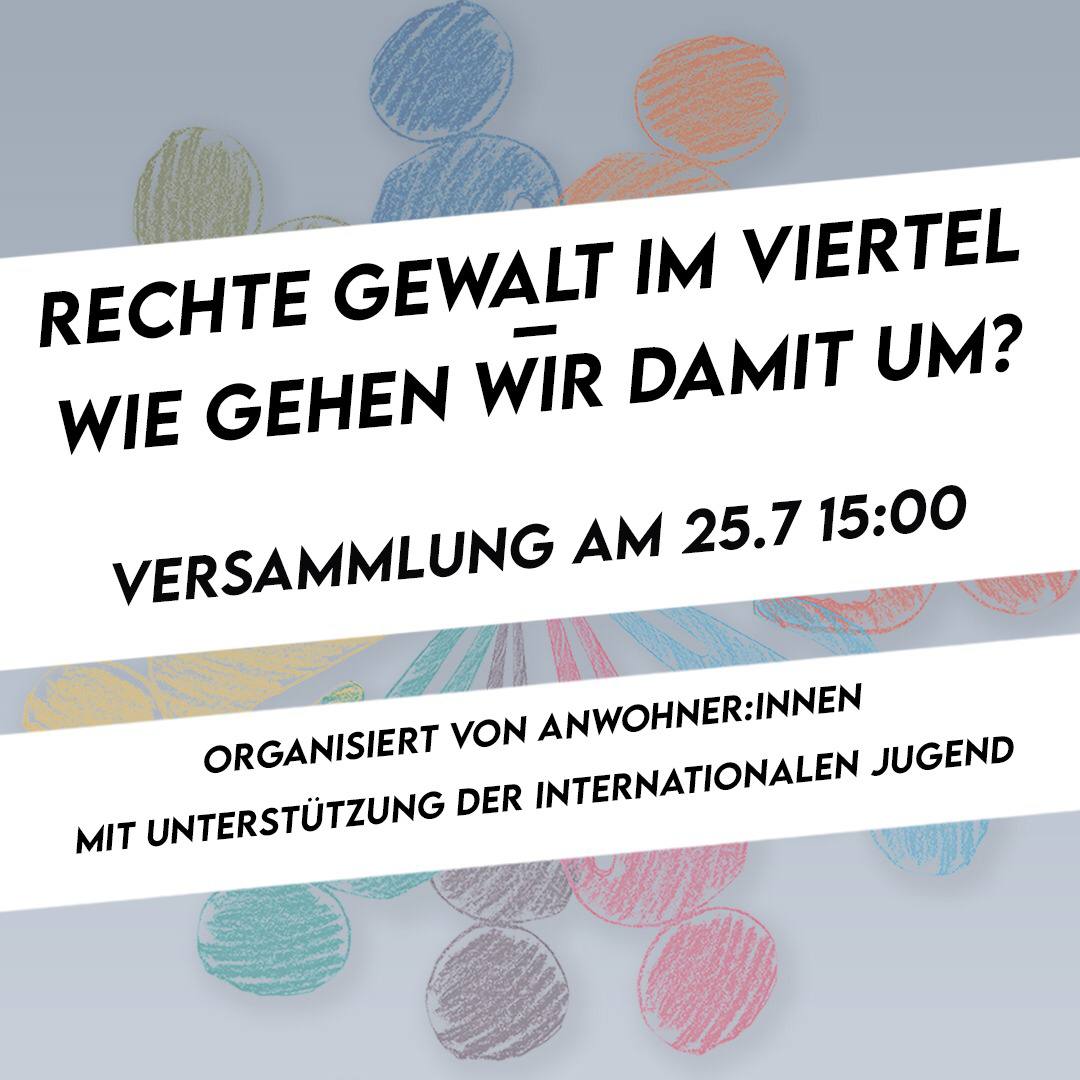 Dort wollen wir ein Zeichen gegen rechte Gewalt setzen und uns austauschen, was wir gegen Rechte Gewalt im Viertel tuen können.