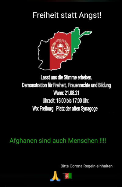 Freiheit statt Angst! Lasst uns die Stimme erheben für Freiheit, Frauenrechte und Bildung in Afghanistan ??