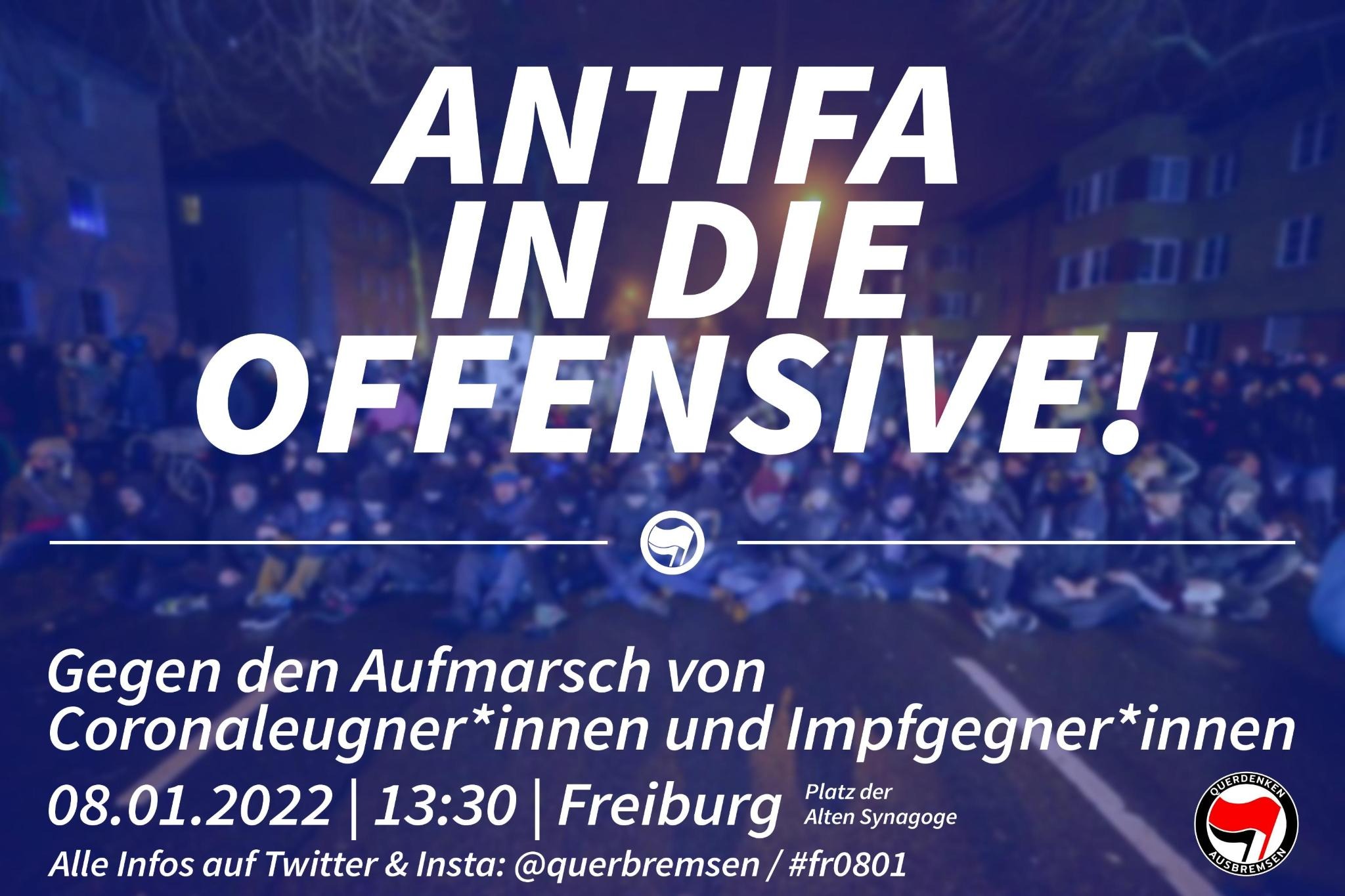 Als Querdenken ausbremsen rufen wir euch dazu auf, am 08. Januar, ab 13:30 Uhr zahlreich zum Platz der Alten Synagoge in Freiburg zu kommen. Bildet Bezugsgruppen, bleibt mobil und passt aufeinander auf!