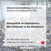 Klimapolitik im Kapitalismus: Mit Volldampf in die Klimakrise Mittwoch, 06.03.24 um 19:15 Uhr Diskussionsveranstaltung Linkes Zentrum Freiburg (LiZ)