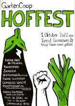 Hoffest der Gartencoop Samstag, 01.10.22 um 14:00 Uhr feiert mit uns 12 Jahre solidarische Selbstorganisation und den ersten resilienten Rundlauf unserer Fruchtfolge Gartencoop, Hofstelle in Tunsel