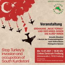 Erdoğans "neue Türkei" und der Krieg gegen die Kurd*innen - Aktueller Bericht der Friedensdelegation Montag, 12.07.21 um 18:30 Uhr Aktuelle Situation + Bericht der Friedensdelegation nach Südkurdistan Linkes Zentrum Freiburg (LiZ)
