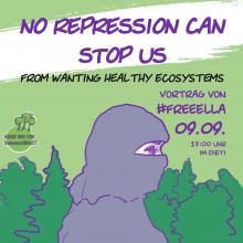'No repression can stop us from wanting healthy ecosystems, stop urban planning in the place of old growth forests now!' Samstag, 09.09.23 um 17:00 Uhr Vortrag mit Ella Langmattenwäldchen/Dieti Waldbesetzung