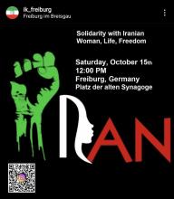 Kundgebung in Solidarität mit der Freiheitsbewegung im Iran Samstag, 15.10.22 um 12:00 Uhr Platz der Alten Synagoge