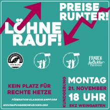 MONTAGSDEMO gegen Preisexplosionen Montag, 21.11.22 um 18:00 Uhr - Mo., 21.11.2022 - 19:30 Kundgebung am EKZ Weingarten Fritz-Schieler-Platz (Weingarten)