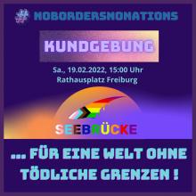 …für eine Welt ohne tödliche Grenzen Samstag, 19.02.22 um 15:00 Uhr Kundgebung Seebrücke Freiburg Rathausplatz