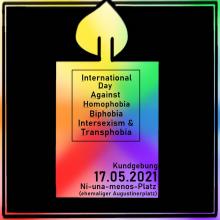 Internationaler Tag gg. Homo-, Bi-, Inter-, Trans- & Queerfeindlichkeit Montag, 17.05.21 um 19:00 Uhr - Mo., 17.05.2021 - 21:00 Kundgebung mit Gedenken Ni una Menos Platz (ehemal. Augustiner Platz)