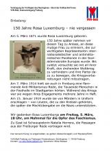 150 Jahre Rosa Luxemburg Freitag, 05.03.21 um 18:00 Uhr Kundgebung, Szenische Lesung und Neustart der Initiative für eine Gedenktafel Mahnmal für die Opfer des Faschismus
