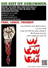 Die Zeit ist gekommen. Frau, Leben, Freiheit Samstag, 19.11.22 um 14:00 Uhr Nehmt an der weltweiten Rally für die Revolution im Iran teil Augustinerplatz