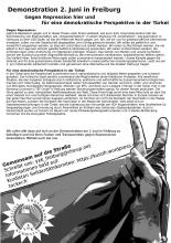 Demonstration gegen die aktuelle Repressionspolitik hier in Freiburg und hin zu den Wahlen für eine demokratische Perspektive in der Türkei.