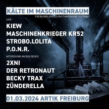 Kälte im Maschinenraum Freitag, 01.03.24 um 20:00 Uhr - Samstag, 02.03.24 um 05:00 Uhr Rhythm’n’Noise Festival ArTik // Freizeichen