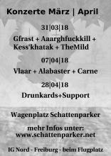 schattis konzerte: Gfrast // Aaarghfuckkill // Kess´khtak // TheMild Samstag, 31.03.18 um 21:00 Uhr crustpunk grindcore und legendäre Aftershow-Partys! Schattenparker