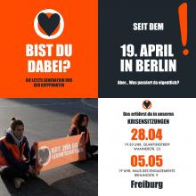 „Was passiert in Berlin?“ – Austausch mit der Letzten Generation in Freiburg Freitag, 05.05.23 um 19:00 Uhr Haus des Engagements Rehlingstraße 9