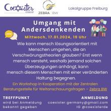 Umgang mit extremen Überzeugungen und anderen Meinungen Mittwoch, 17.01.24 um 19:00 Uhr Zusammenkommen aus unterschiedlichen Glaubensüberzeugungen und Weltanschauungen ganz woanders tba nach Anmeldung