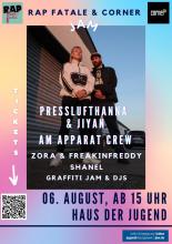 [abgesagt] Rap Fatale x Corner Jam Samstag, 06.08.22 um 15:00 Uhr Veranstaltung entfällt leider Haus der Jugend, Jugendbildungswerk