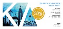 VERNISSAGE Warmer Schlafsack – Kalte Stadt Version 2.0 Kulturaggregat (Freiburger StraßenSchule) Samstag, 16.10.21 um 20:00 Uhr Vernissage & Ausstellung KA – FSS // ÖA-Textbaustein kurz Kulturaggregat / Hilda5