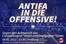 Antifa in die Offensive - Gemeinsam auf die Straße gegen Coronaleugner:innen! Samstag, 08.01.22 um 13:30 Uhr Solidarität statt Verschwörungsmythen! Platz der Alten Synagoge