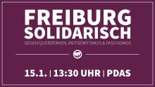 Freiburg Solidarisch - Gegen Querdenken, Antisemitismus & Faschismus Samstag, 15.01.22 um 13:30 Uhr Gemeinsam auf die Straße gegen Coronaleugner:innen! Platz der Alten Synagoge